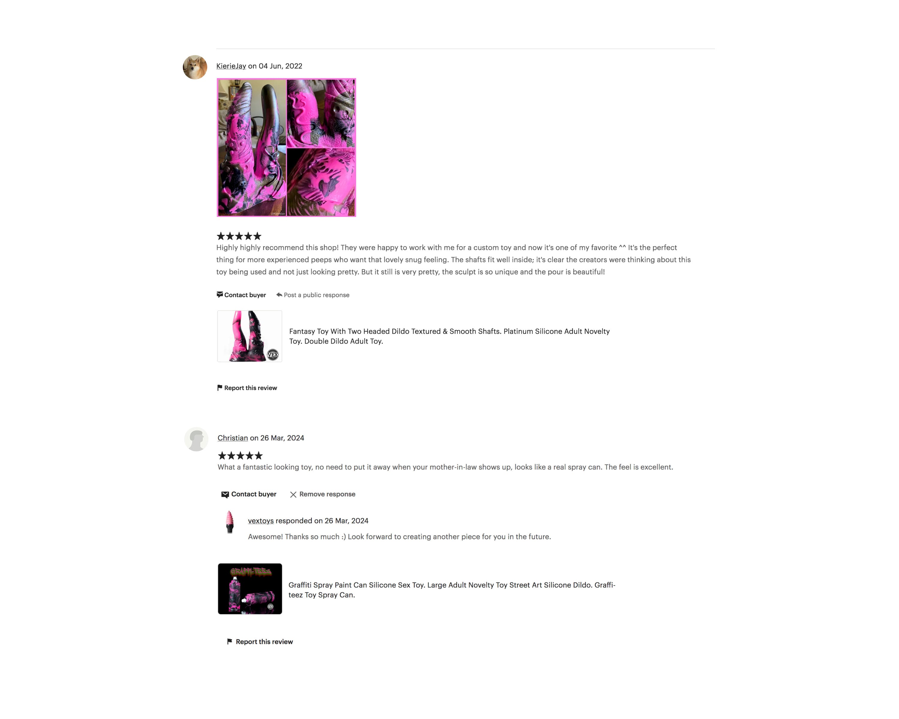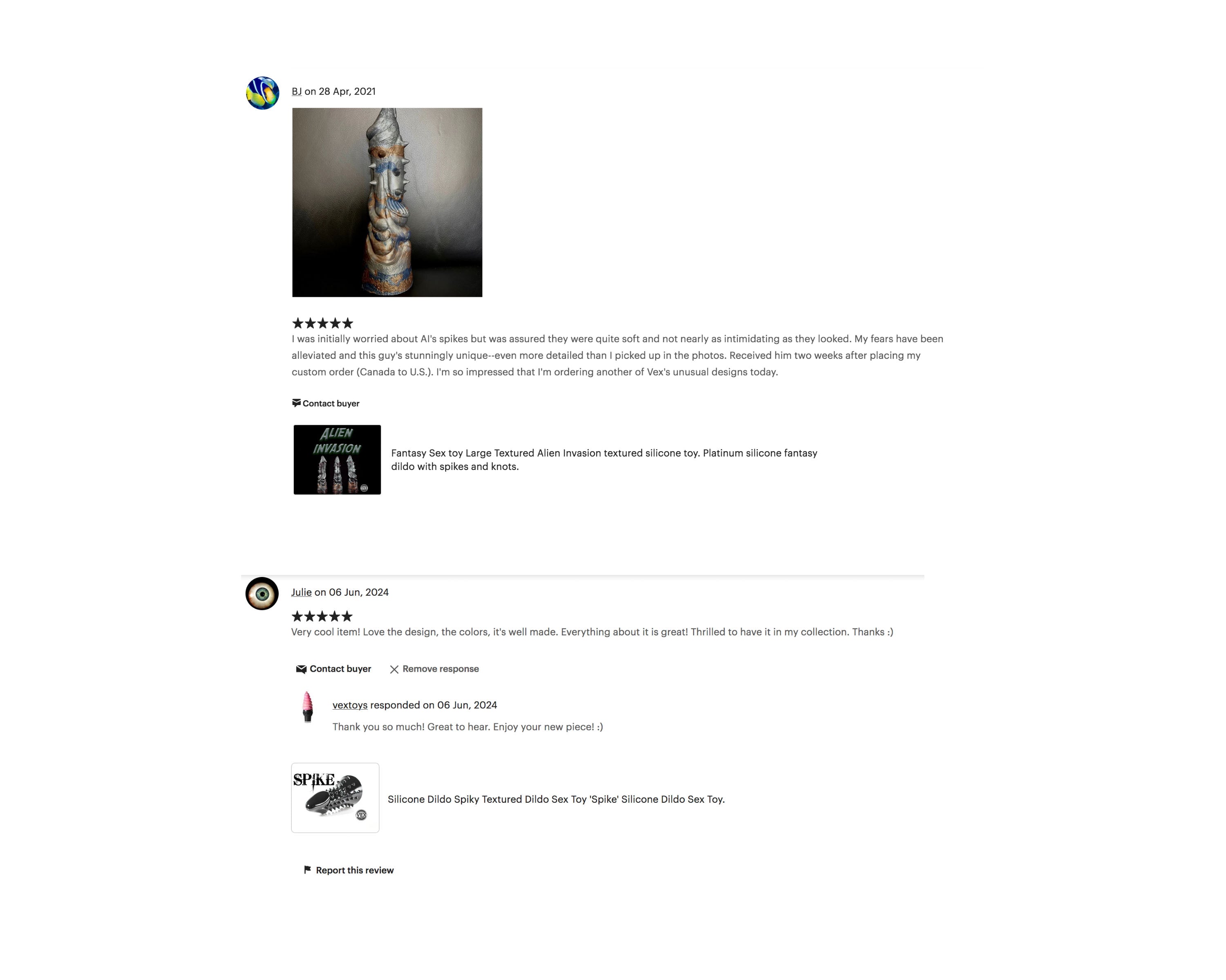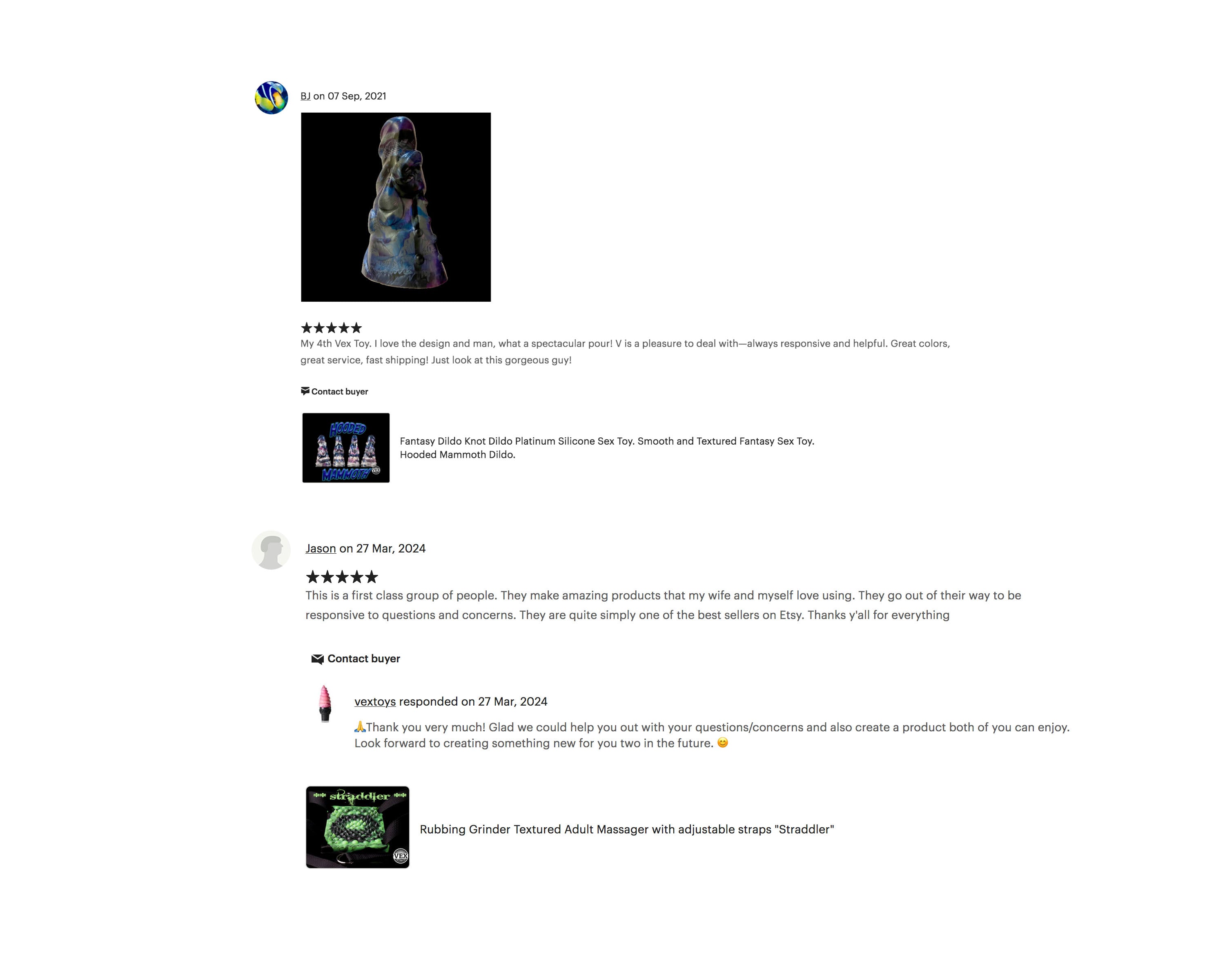 Hello & welcome to VexToys! We hope to bring you some unique, fun, and stylish toys to add to your collection. All our toys are hand sculpted in clay, molded, and cast it premium platinum silicone that is medical grade, body safe, and hypoallergenic. We are currently working hard to bring new toys to this site so please check back frequently. If you have any questions, please feel free to reach out to us and we will be happy to help. V