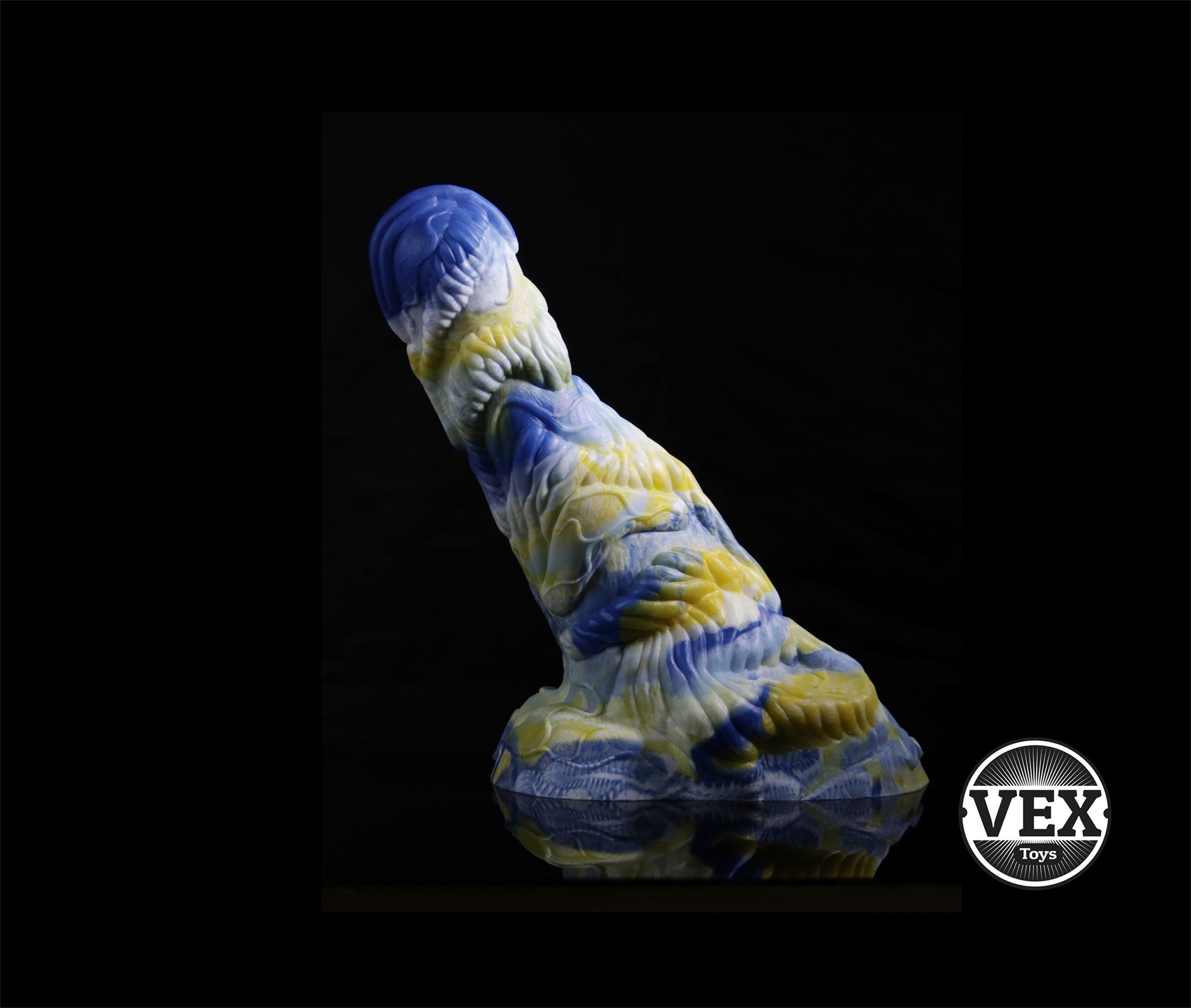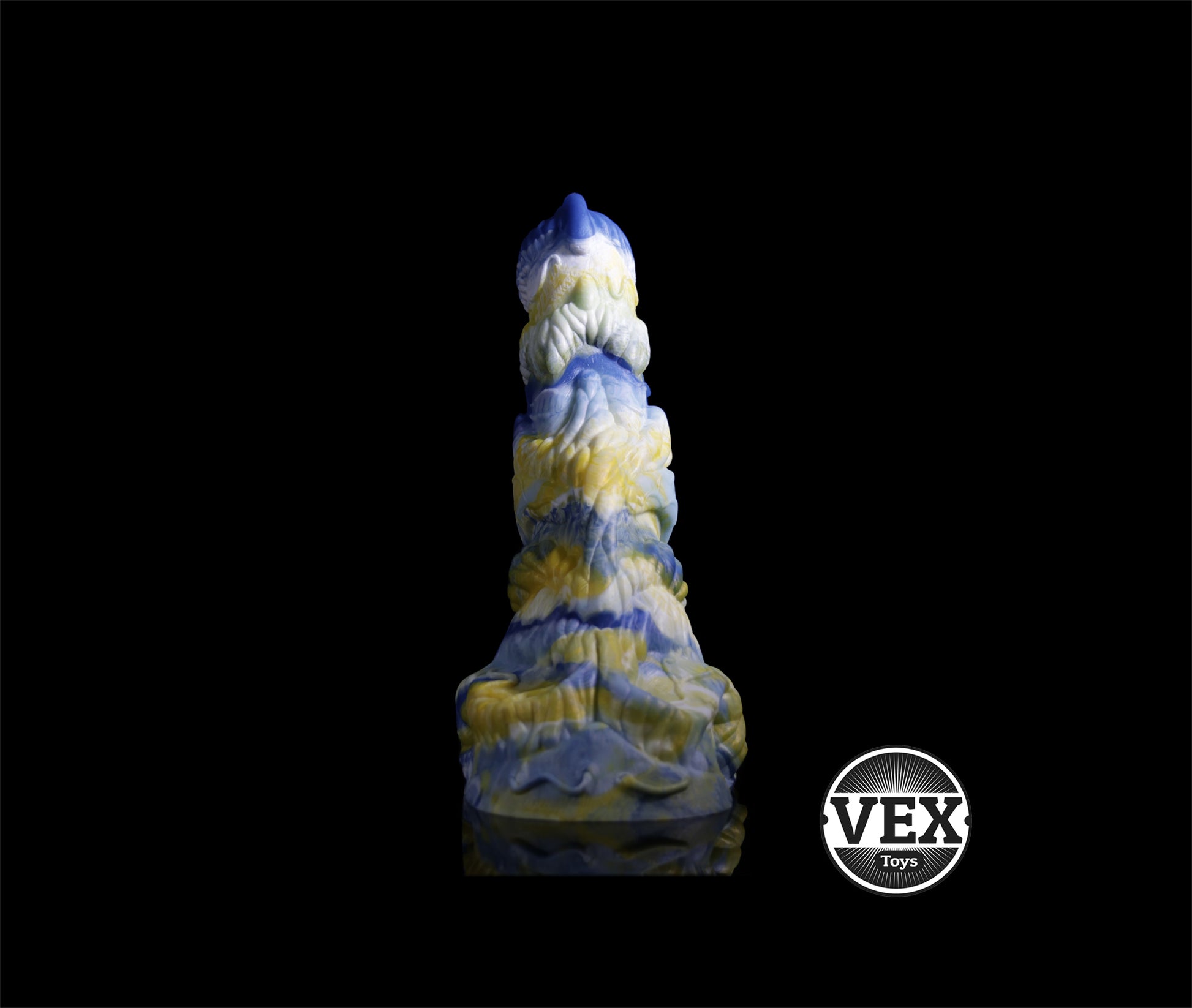 Enjoy this uniquely hand sculpted fantasy toy with its many textural peeks and valleys. This 100% Platinum Silicone piece can now be customized with your specified color combinations and in your desired pour style ( The pictured toy has been cast in a 3 color marble pour). The 'Colossal' also features a solid wide base for stability and support. Designed specifically for touch and feel, you are sure to encounter a variety of pleasurable textures throughout the entire toy.