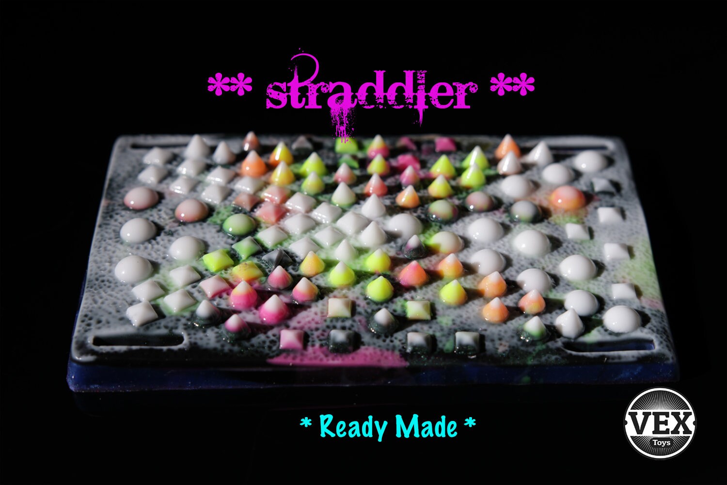 The 'Straddler' is a versatile Platinum Silicone toy made up of over 100 textures, including Spikes, Studs and Bumps. This Non Penetrative Toy can be strapped to a pillow for solo play or to a partners thigh for couples fun. It comes with 2 adjustable straps that can quickly tightened and loosened via D-rings. This textured silicone pad can also be rolled and used as a personal massager for males when the straps have been removed.
